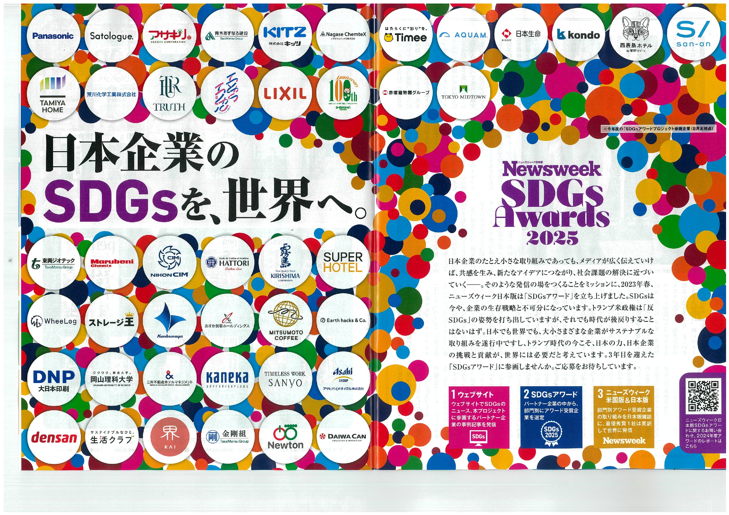Newsweek日本版10月7日号にて、 SDGsアワードの事前告知として 企業ロゴが掲載されました。